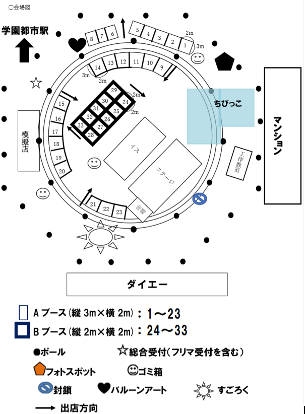 下の地図をご覧の上、フリーマーケットの希望出店場所を、
