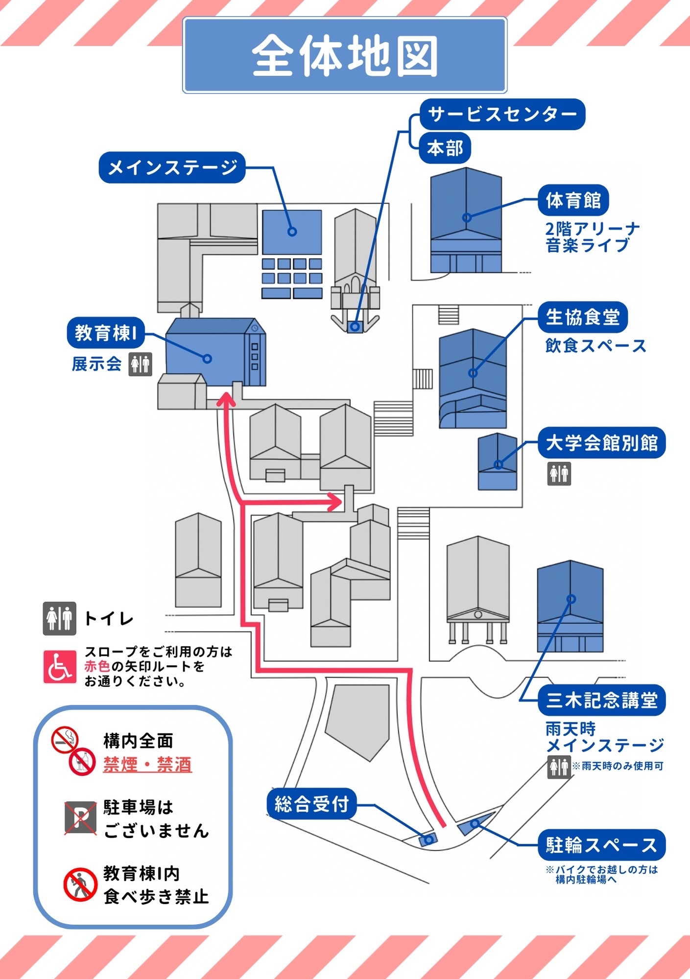2025年の大阪・関西万博が10月に幕を閉じた直後、11月初旬に開催される商大祭。 そのタイミングを活かし、"万博の続きを、神戸(兵庫)で"というように、まるで万博が商大祭に巡ってきたかのような体験を創出します。 模擬店や企画、出展団体のブースは「パビリオン」として展開。 訪れるすべての人が、学内にいながら世界を旅するようなワクワク感を味わえる、“もうひとつの万博”を目指します。